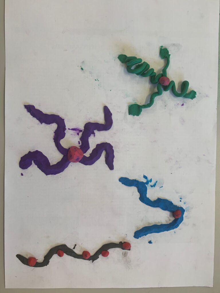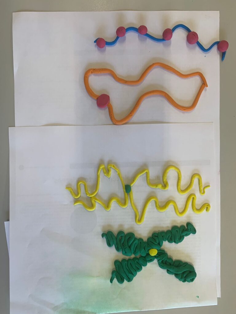 Os alunos observaram os cromossomos — estruturas formadas por DNA e proteínas — que armazenam e organizam as informações genéticas responsáveis pelo funcionamento e herança dos seres vivos” e realizaram a reprodução das estruturas usando massa de modelar .